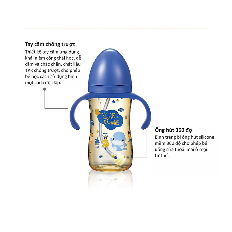 Điểm nổi bật của bình sữa này chính là tay cầm tiện lợi, giúp bé dễ dàng cầm nắm và tự uống, từ đó phát triển khả năng tự lập ngay từ nhỏ. Thể tích 330ml cũng rất lý tưởng cho những lần bú của bé, cung cấp đủ dinh dưỡng mà không cần phải thay bình thường xuyên.