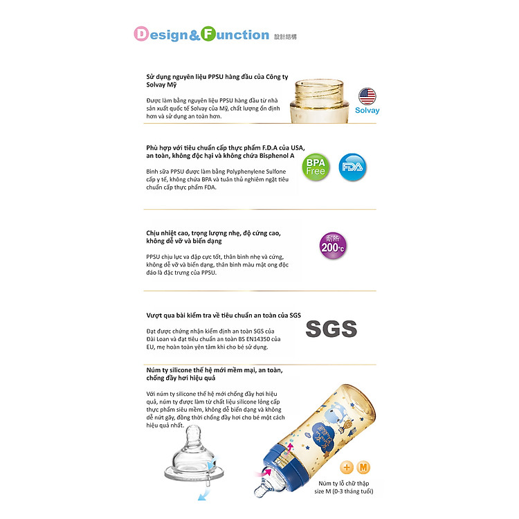 - Chất liệu: Nhựa PPSU cao cấp từ công ty Solvay, Mỹ.