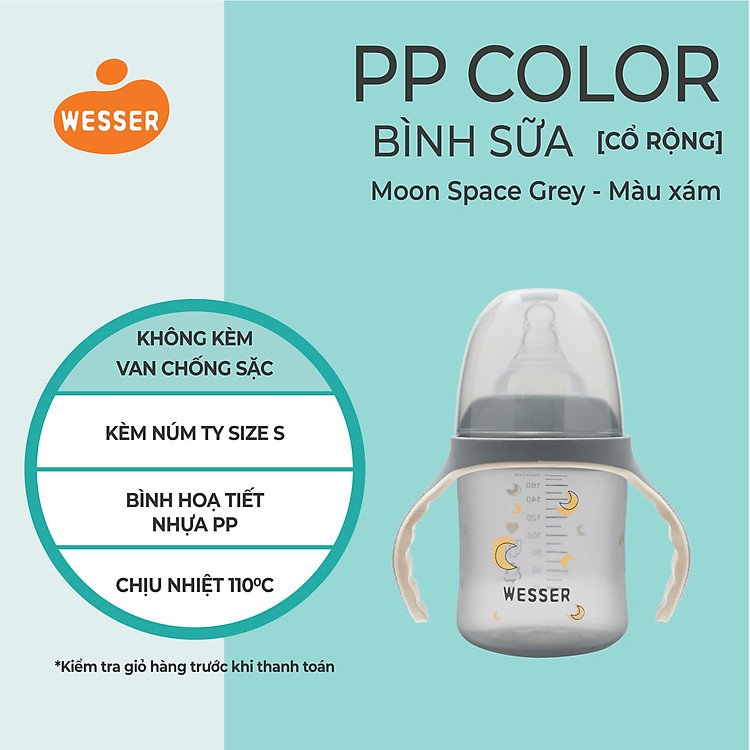 Mua Bình sữa CỔ RỘNG PP COLOR Wesser 180ml/260ml – Xám 180ml tại WESSER OFFICIAL STORE