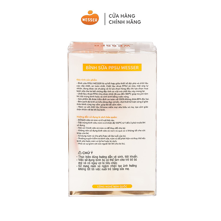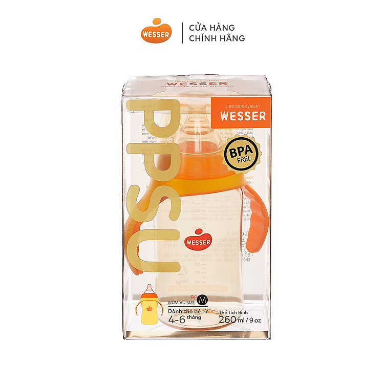 - Bình sữa PPSU Wesser 260ml với thiết kế đột phá và chất liệu cao cấp.