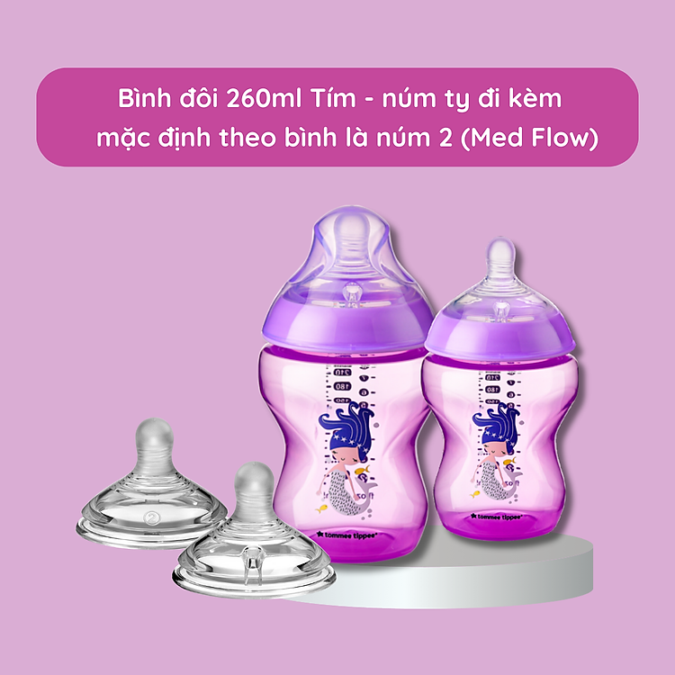 Mua Bình Sữa Ty Siêu Mềm Tự Nhiên Tommee Tippee Closer To Nature 260ml, Núm Ty Của Bình 3-6 Tháng – Tím (Bình Đôi) Tại Tommee Tippee Official Store