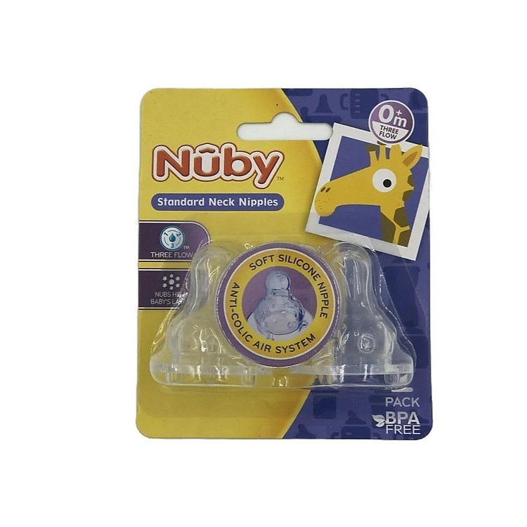 Bộ sản phẩm núm ty cổ hẹp 3 dòng chảy đến từ thương hiệu Nuby nổi tiếng của Mỹ, sản xuất tại Trung Quốc. Với thiết kế thông minh và chất liệu an toàn, bộ núm này giúp bé dễ dàng chuyển tiếp từ ti mẹ sang bình sữa mà không gặp khó khăn. Núm ty được sản xuất với 3 dòng chảy khác nhau, phù hợp với từng giai đoạn phát triển của bé, đảm bảo bé nhận đủ lượng sữa mà không bị sặc.