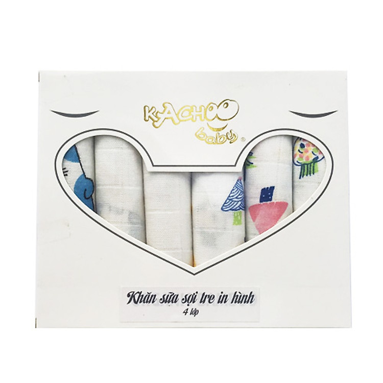 - Hộp gồm 6 khăn sữa sợi tre 4 lớp từ thương hiệu KACHOO.