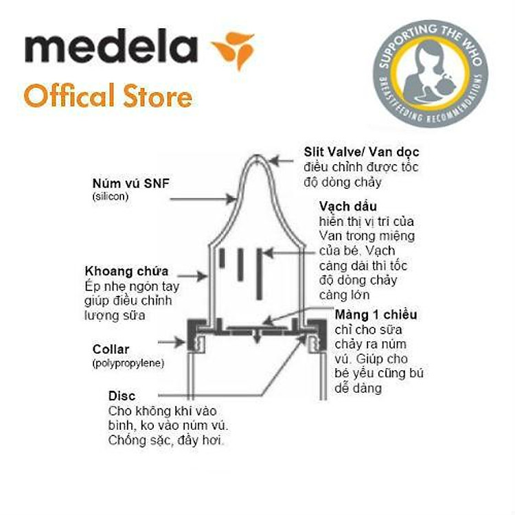 - Núm vú Medela cho trẻ bú yếu, hỗ trợ bé gặp khó khăn khi bú mẹ.