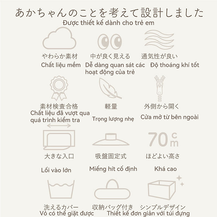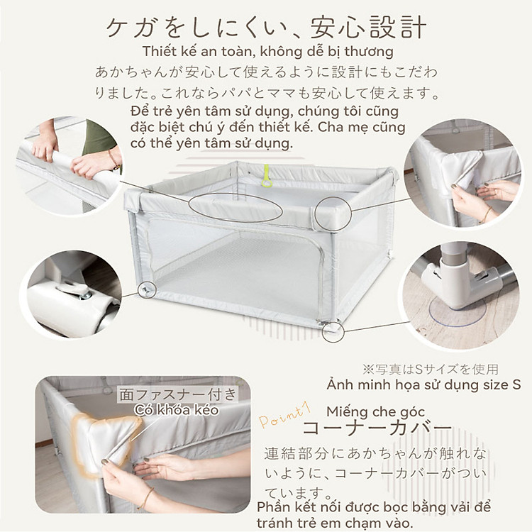 - Quây cũi bằng vải lưới thoáng khí, giúp bảo vệ trẻ em khi vui chơi.