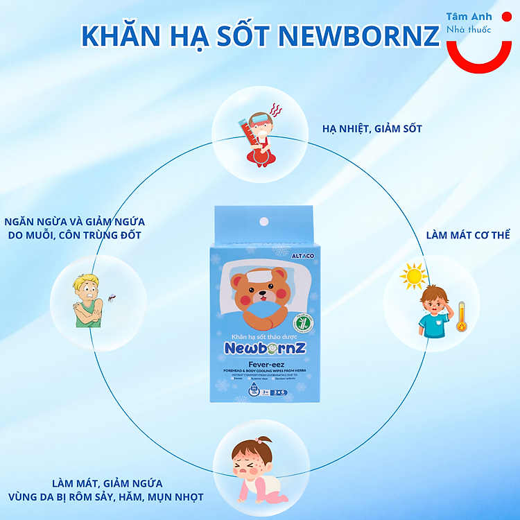 - Khăn lau thảo dược hạ sốt NewbornZ dành cho trẻ từ 3 tháng tuổi.