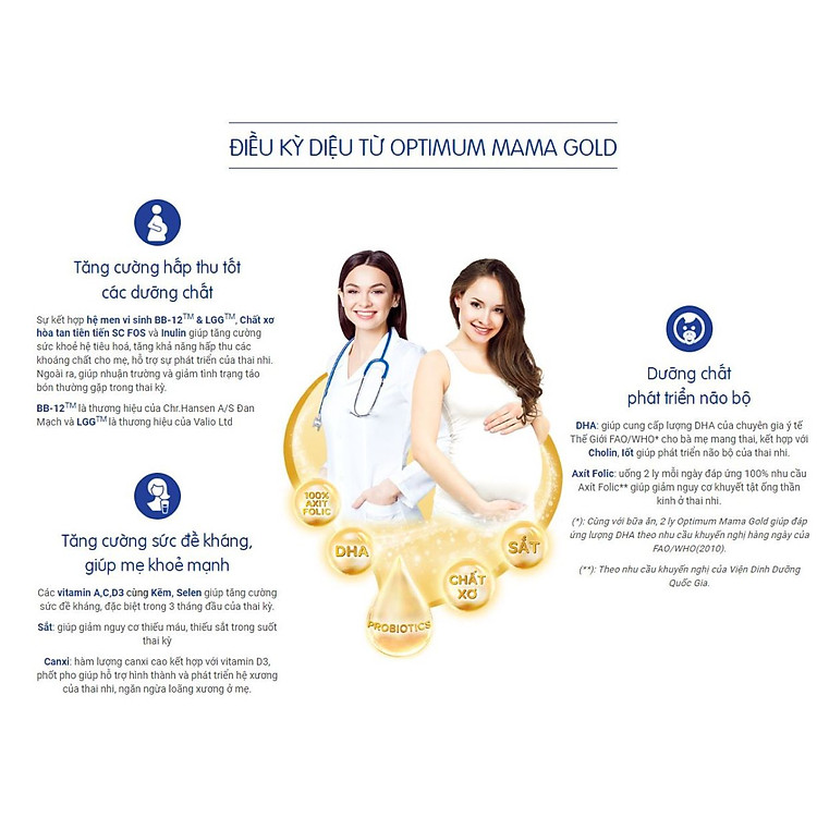 - Dinh dưỡng: Bổ sung DHA, Canxi, Sắt cùng vitamin và khoáng chất thiết yếu