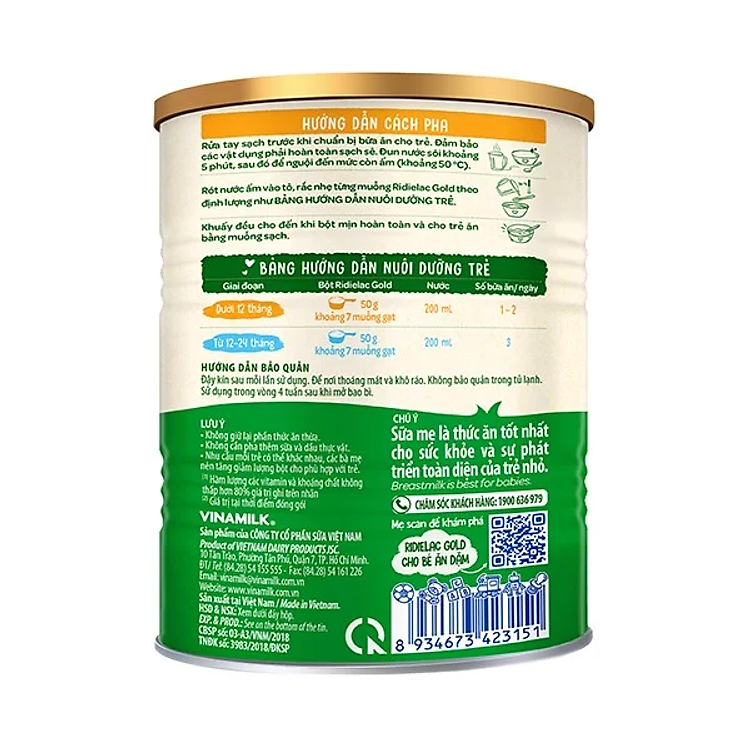 - Chú ý: Sữa mẹ vẫn là thức ăn tốt nhất cho sức khỏe và sự phát triển của trẻ nhỏ. Tuy nhiên, bột ăn dặm Ridielac Gold là một sản phẩm bổ sung tuyệt vời, giúp trẻ làm quen với thức ăn đặc và đa dạng hóa chế độ ăn uống.