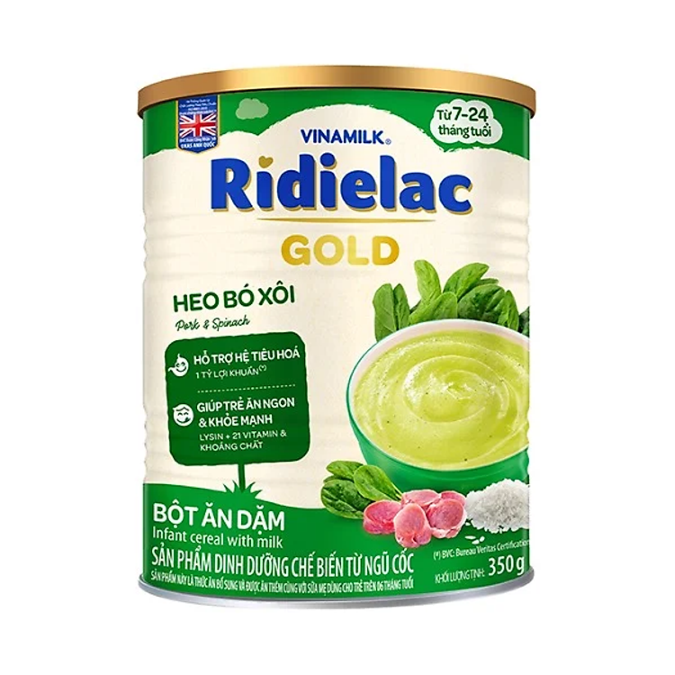 - Sản phẩm: BỘT ĂN DẶM RIDIELAC GOLD HEO BÓ XÔI – HỘP THIẾC 350G