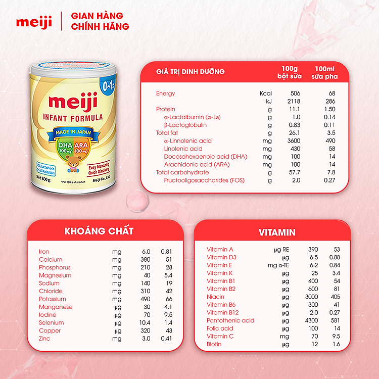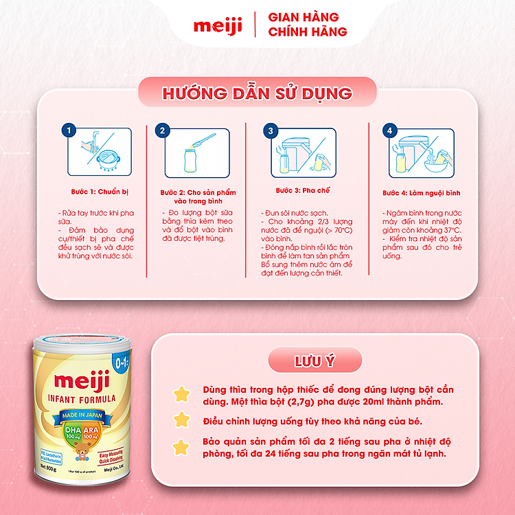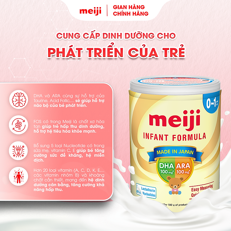 - Sản phẩm dinh dưỡng công thức Meiji Infant Formula cho trẻ từ 0-1 tuổi.