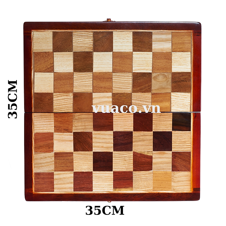 - Bộ bàn cờ vua gỗ hương với kích thước 35cm x 36cm x 2cm.