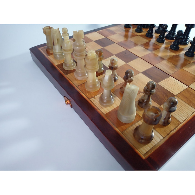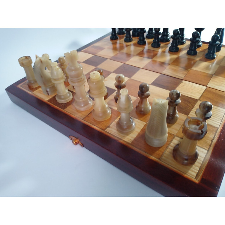 - Quân cờ được chế tạo từ sừng trắng và sừng đen tự nhiên 100%.