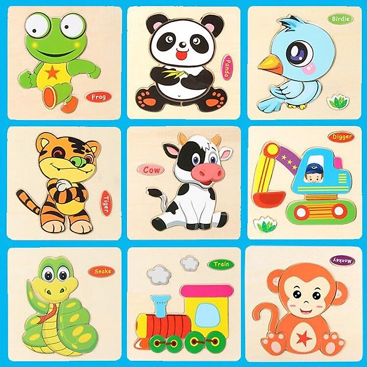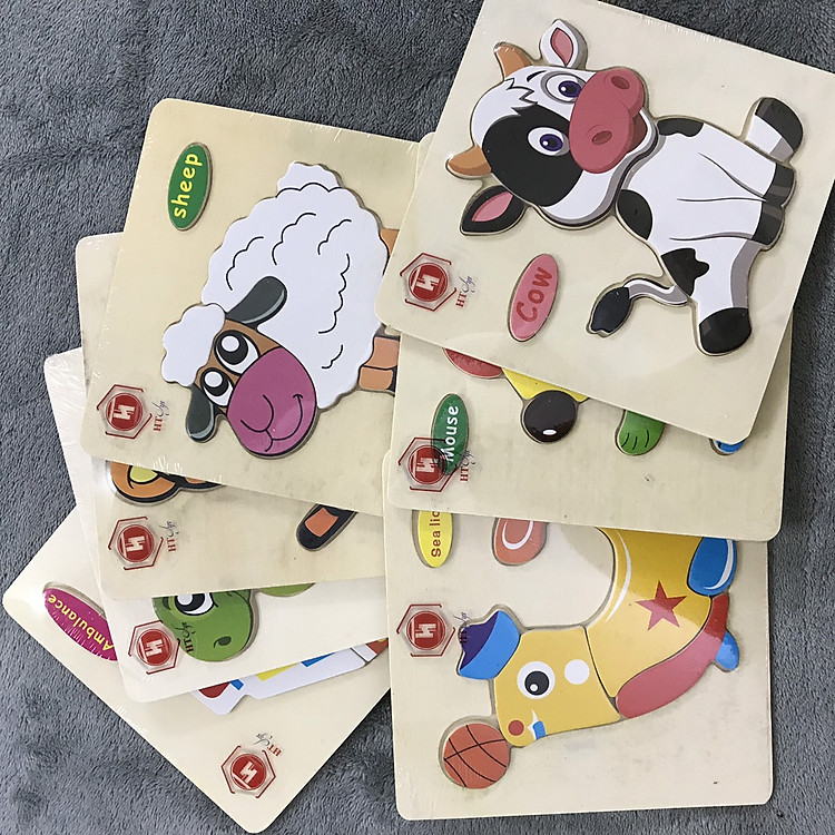 - Combo 10 tranh ghép hình 3D với chủ đề động vật và phương tiện.