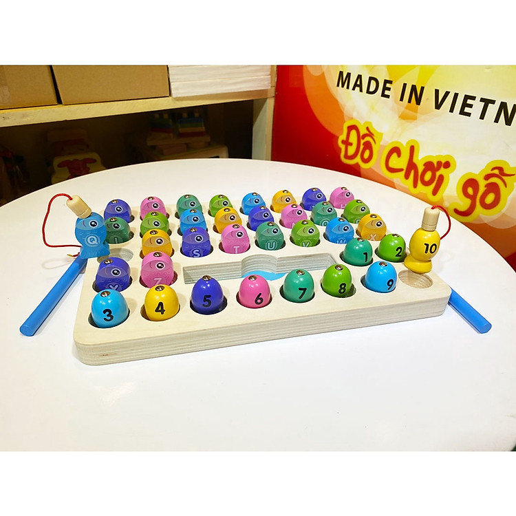 Đồ Chơi Câu Cá Bằng Gỗ là một bộ trò chơi giáo dục tuyệt vời, giúp bé vừa học vừa chơi một cách sáng tạo. Với bảng gỗ chắc chắn và nhẵn, sản phẩm này chứa đựng những chữ cái và số bên trong các lỗ nhỏ, tạo điều kiện cho trẻ có thể khám phá và học hỏi. Bộ đồ chơi bao gồm 26 bé cá nhỏ với mỗi bé là một chữ cái và 10 số, giúp bé nhận diện và phân biệt dễ dàng.