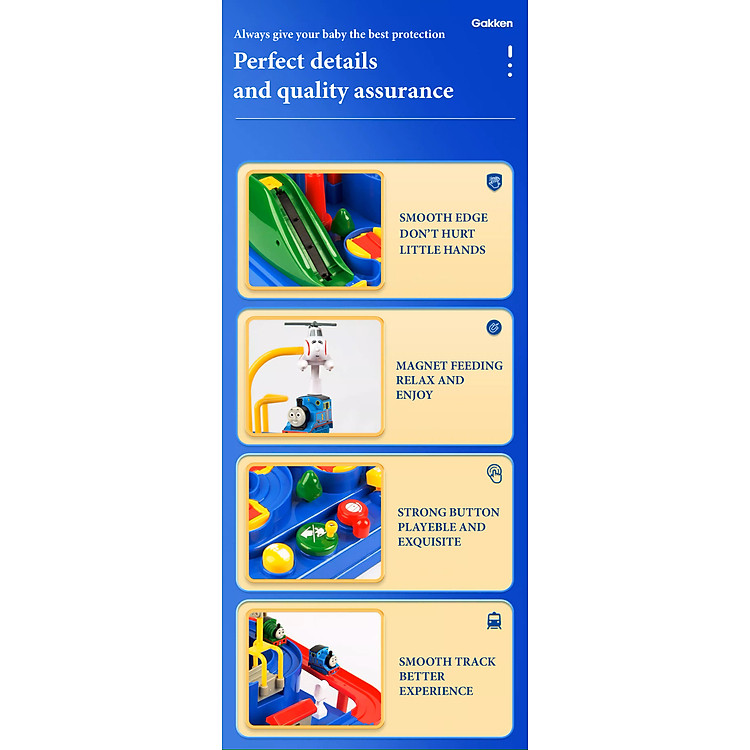 Bộ đồ chơi xe lửa Thomas Adventure mang đến cho bé một thế giới phiêu lưu đầy màu sắc, giúp trẻ không chỉ vui chơi mà còn phát triển tư duy và kỹ năng vận động. Sản phẩm được sản xuất bởi thương hiệu Gakken nổi tiếng đến từ Nhật Bản, với kích thước 362036 cm, được làm từ chất liệu nhựa ABS và PP an toàn cho sức khỏe của trẻ. Với độ tuổi khuyến nghị từ 3 tuổi trở lên, bộ đồ chơi này phù hợp với những bé yêu thích khám phá và sáng tạo.