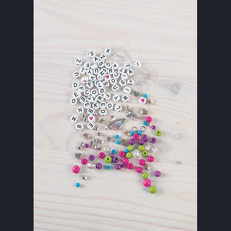 - Bộ thiết kế bao gồm 60 hạt chữ cái và 70 hạt thời trang.