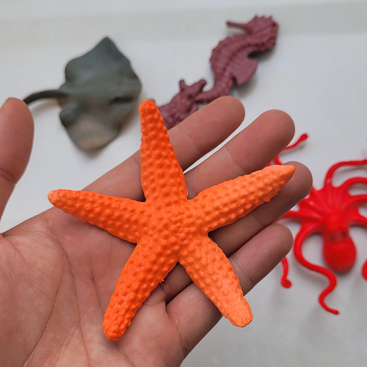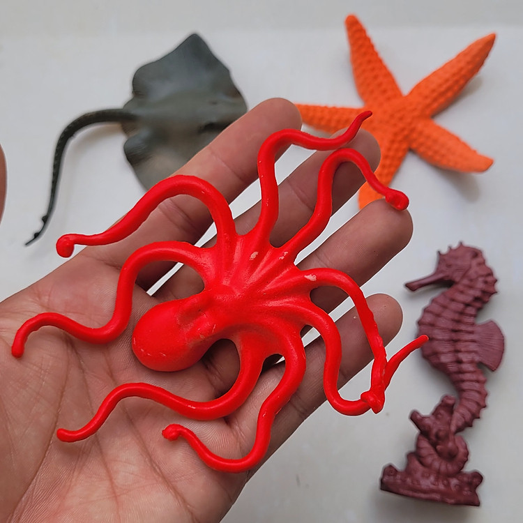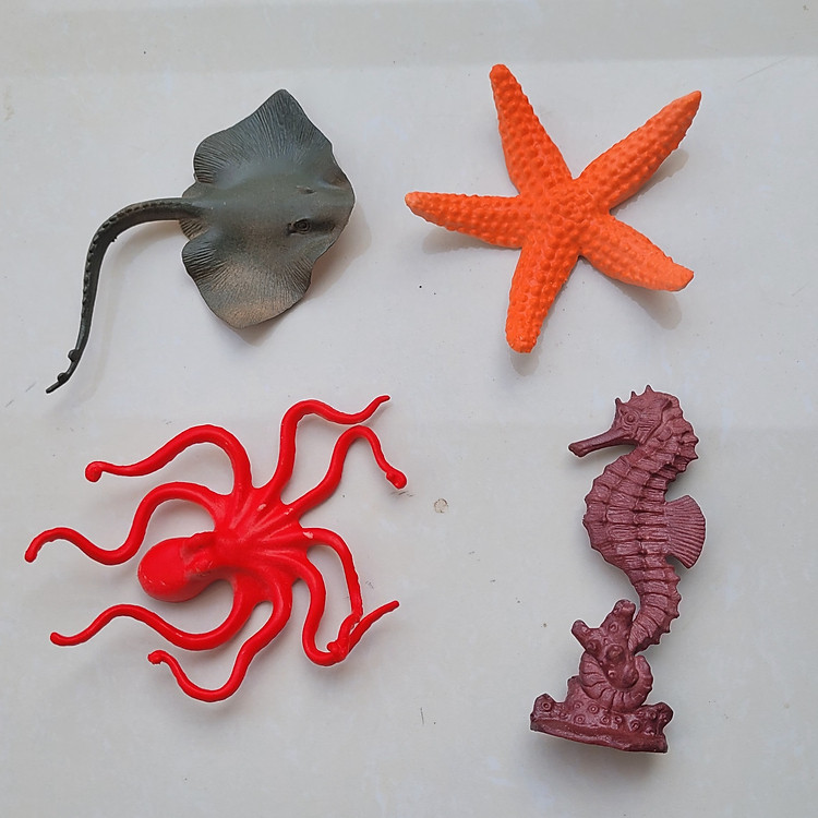 - Bộ đồ chơi gồm 4 loài động vật biển: Cá Đuối, Cá Ngựa, Bạch Tuộc, và Sao Biển.