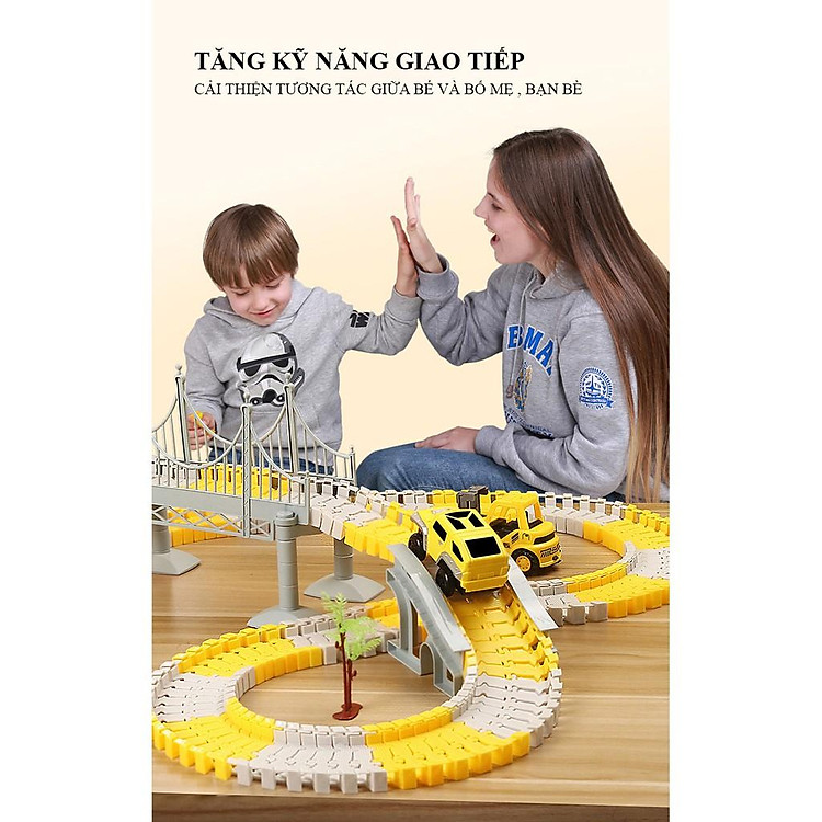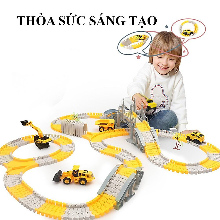 - Bộ đồ chơi lắp ghép cho trẻ em với thiết kế đường ray oto và tàu hỏa.