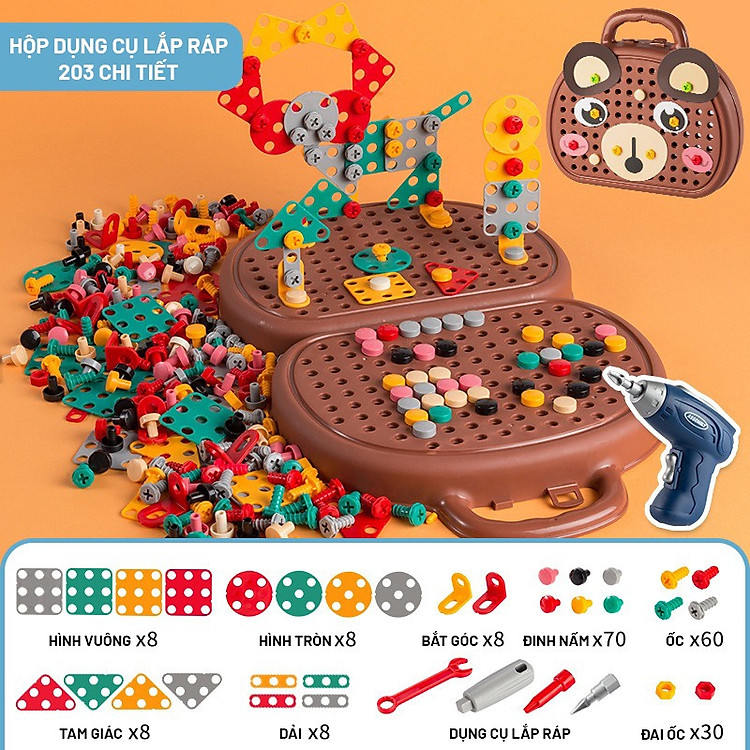- Bộ đồ chơi lắp ghép kỹ sư cho trẻ em với khoan điện và vặn ốc vít.