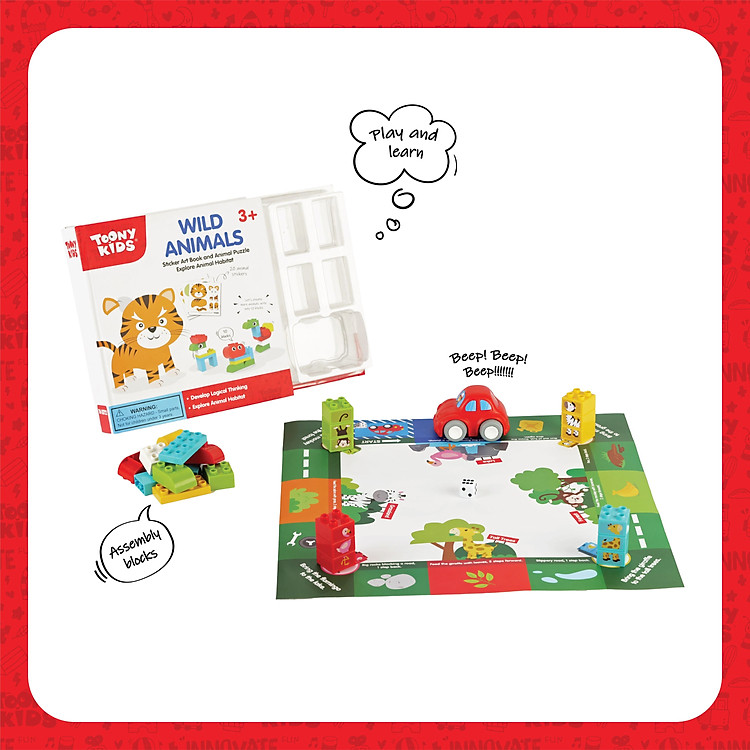 - Đồ chơi combo bao gồm sách b stickers và lắp ráp động vật TOONYKIDS.