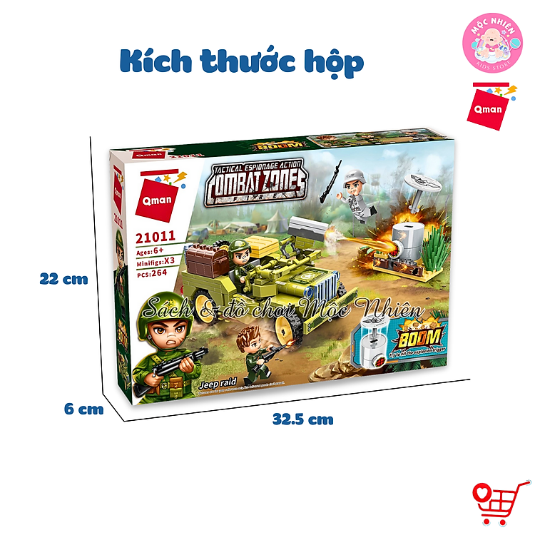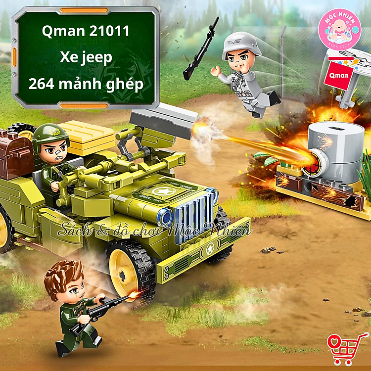 - Đồ chơi xếp hình Qman 21011 – Xe Jeep, gồm 264 mảnh ghép.