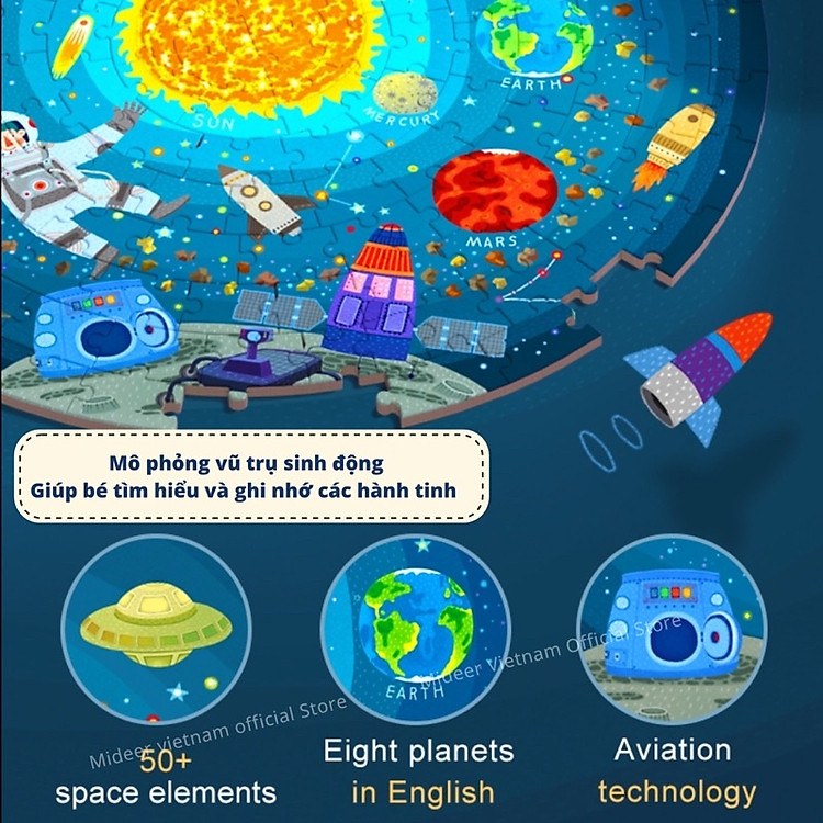 BỘ XẾP HÌNH GHÉP HÌNH TRÒN MIDEER 150 MIẾNG – KHÁM PHÁ VŨ TRỤ MD3082 là một bộ ghép hình độc đáo giúp bé thỏa sức sáng tạo và khám phá. Hộp ghép hình tròn có đường kính 22cm cùng độ dày 12.2cm, đảm bảo độ bền và dễ dàng cất giữ. Bộ sản phẩm gồm 150 mảnh ghép với độ dày lên đến 2.5mm, giúp mảnh ghép không dễ bị uốn cong, mang lại trải nghiệm thú vị cho bé.