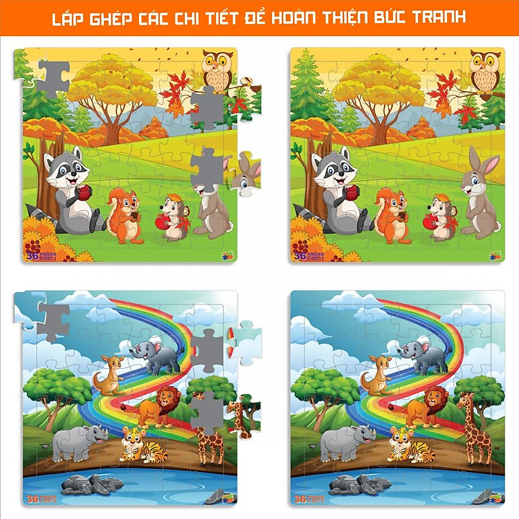 Bộ 2 Tranh Xếp Hình 36 Mảnh – Lựa Chọn Tuyệt Vời Cho Bé Yêu
