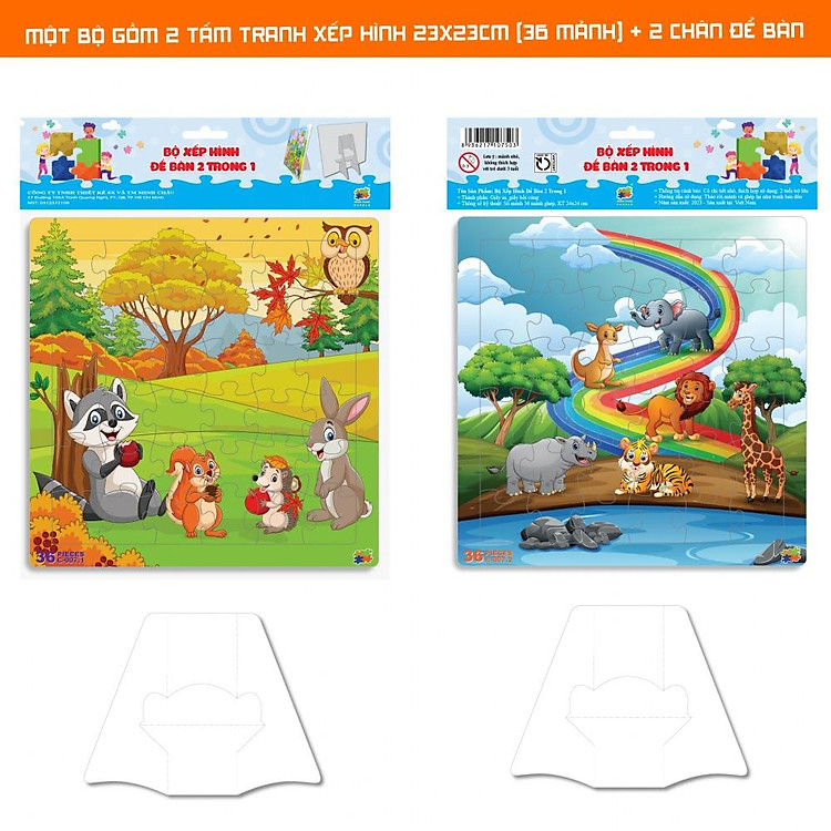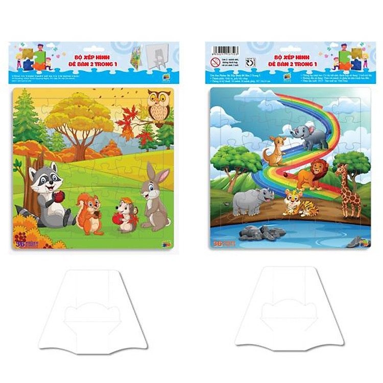 - Bộ 2 tranh xếp hình 36 mảnh để bàn kích thước 23 x 23 cm.