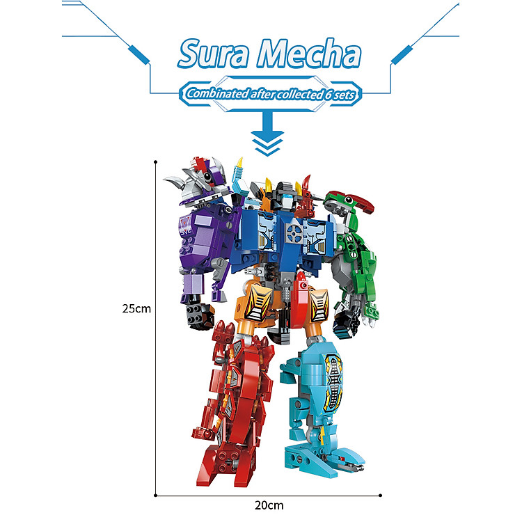 - Đồ chơi xếp hình 6 in 1 Qman 1414 – Siêu Robot khủng long Sura.