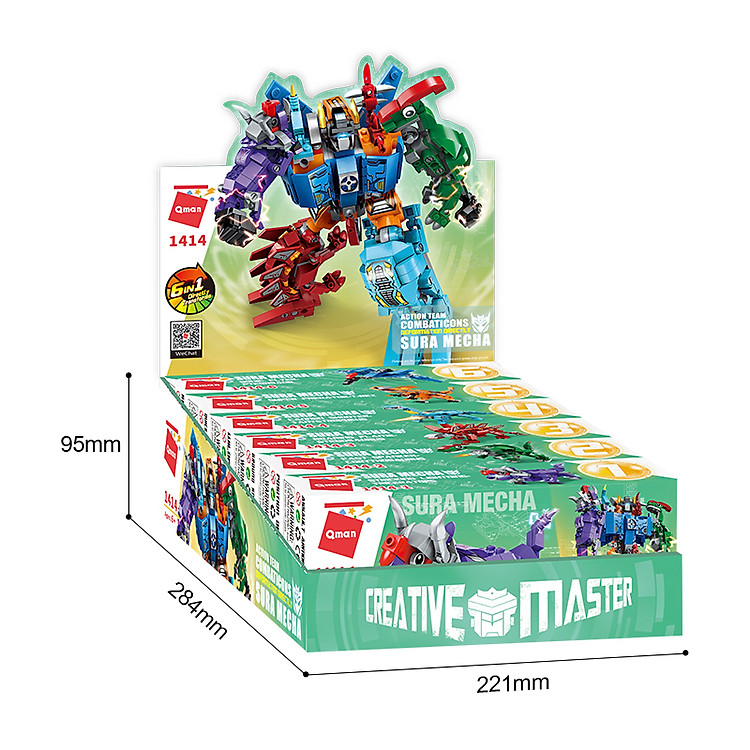 - Hộp 6 bộ đồ chơi lắp ráp Robot biến hình – Khủng long Qman 1414 với 553 chi tiết.