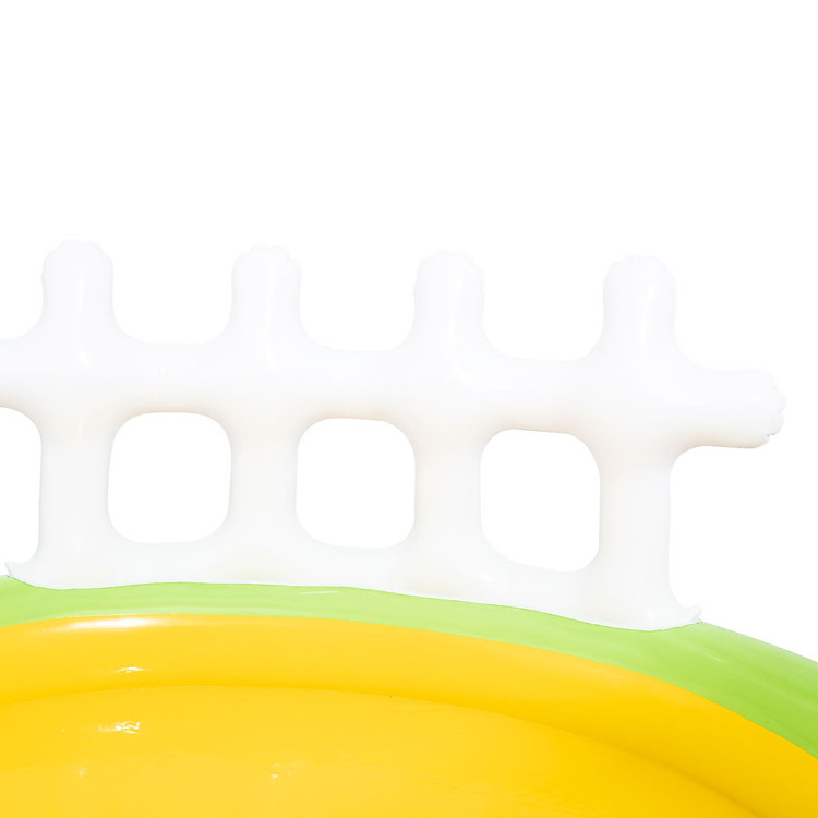 Bể Phao Hình Cánh Cổng Nông Trại Bestway 53065 được làm từ chất liệu nhựa an toàn, không gây ảnh hưởng đến sức khỏe của trẻ nhỏ. Kích thước sau khi bơm hơi là 175 x 147 x 102 cm, đủ rộng rãi để bé có thể thoải mái vui chơi.