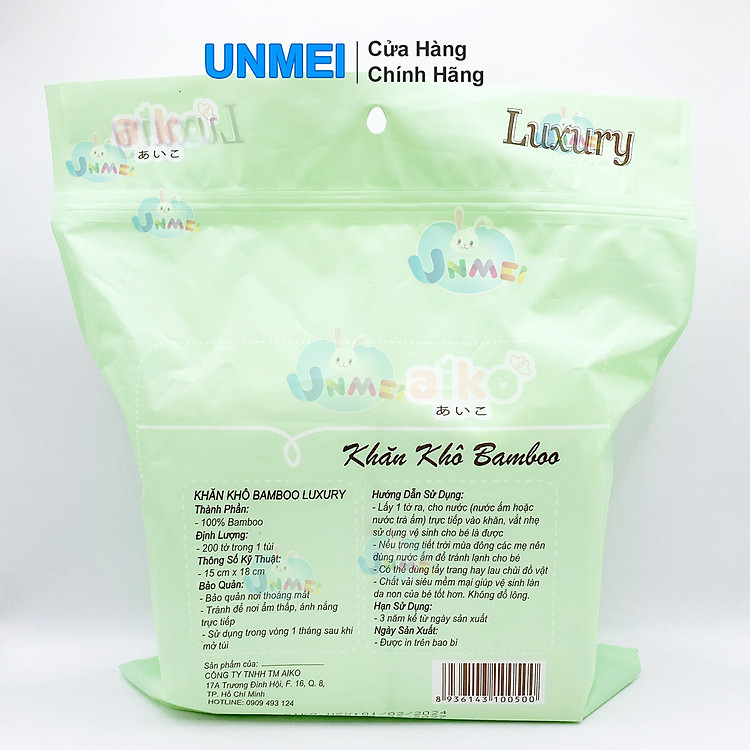 Mua Khăn Khô, Khăn Vải Khô Đa Năng AIKO Bambo Luxury 200 tờ/bịch (KT: 15x18cm) Siêu Mềm Mại, An Toàn Cho Da Bé tại Shop Mẹ Và Bé UnMei
