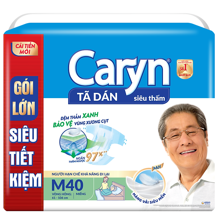 Tã Dán Siêu Thấm Caryn Gói M40 – Giải Pháp Chăm Sóc Người Lớn Tuổi Thoải Mái và Tiện Lợi